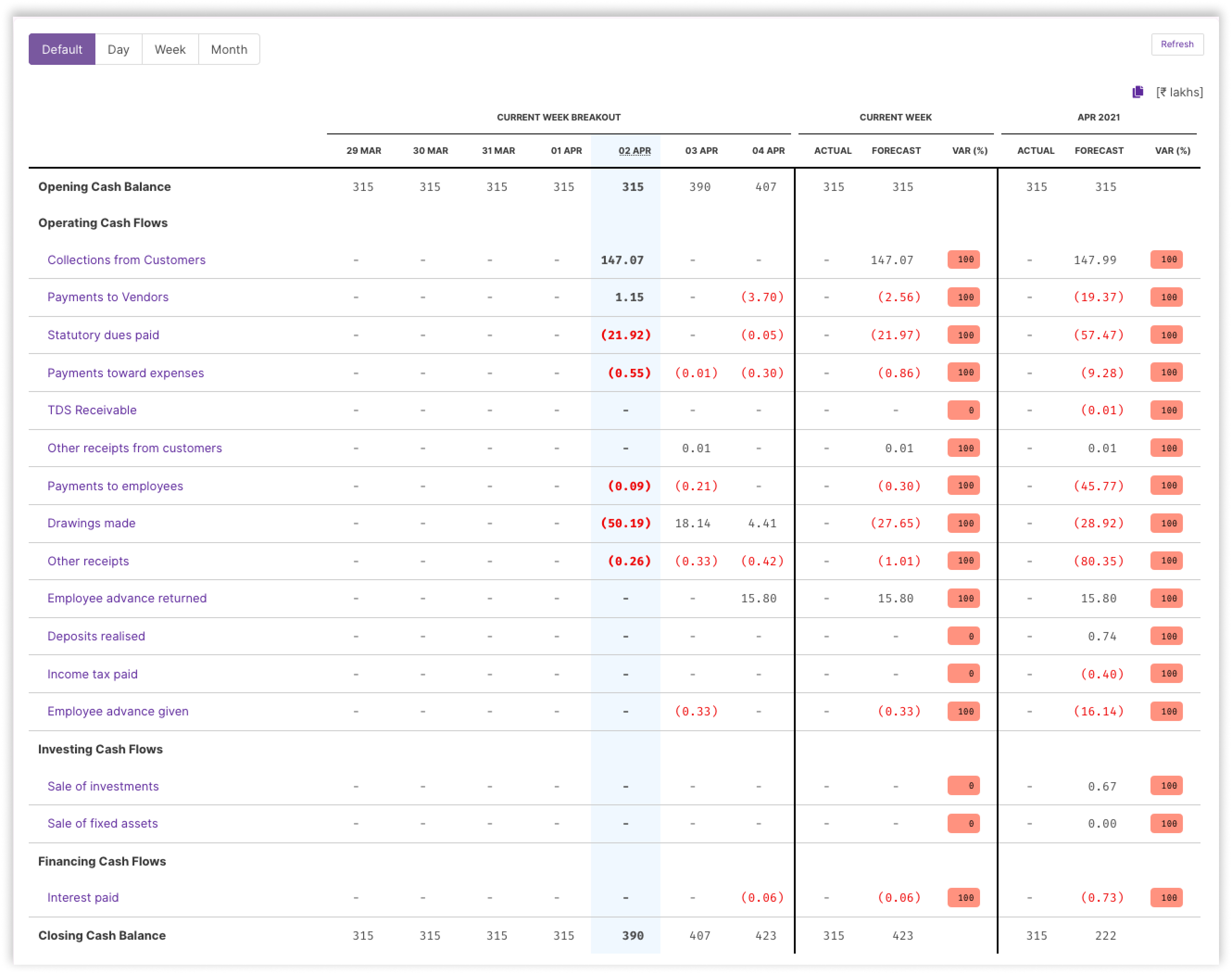 Automated direct cash flow statement with customisable categorization of payments and receipts including the drill down option for transaction level details